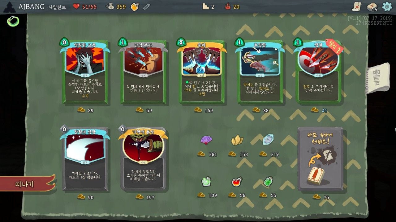 상점이야 뭐~ 물건 파는거지만 원하는 유물이나 카드가 있을때는 그 쪼는맛이 있다는거죠.