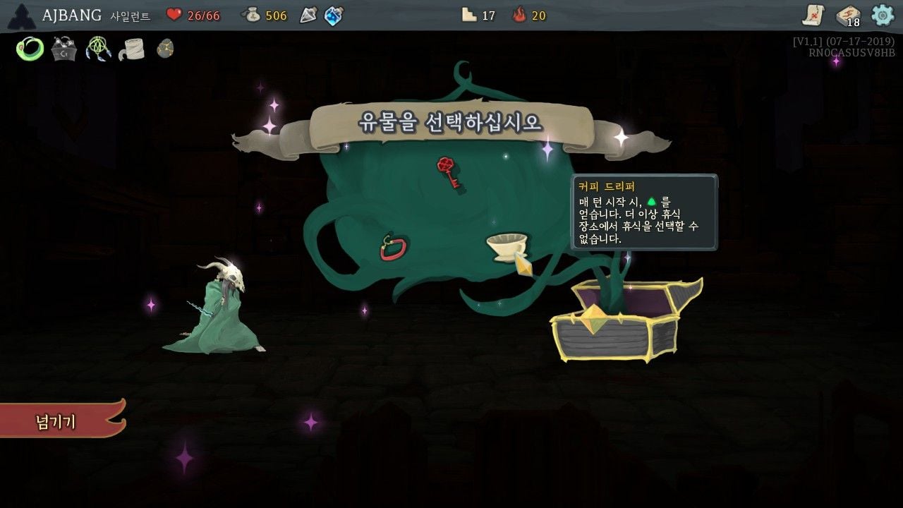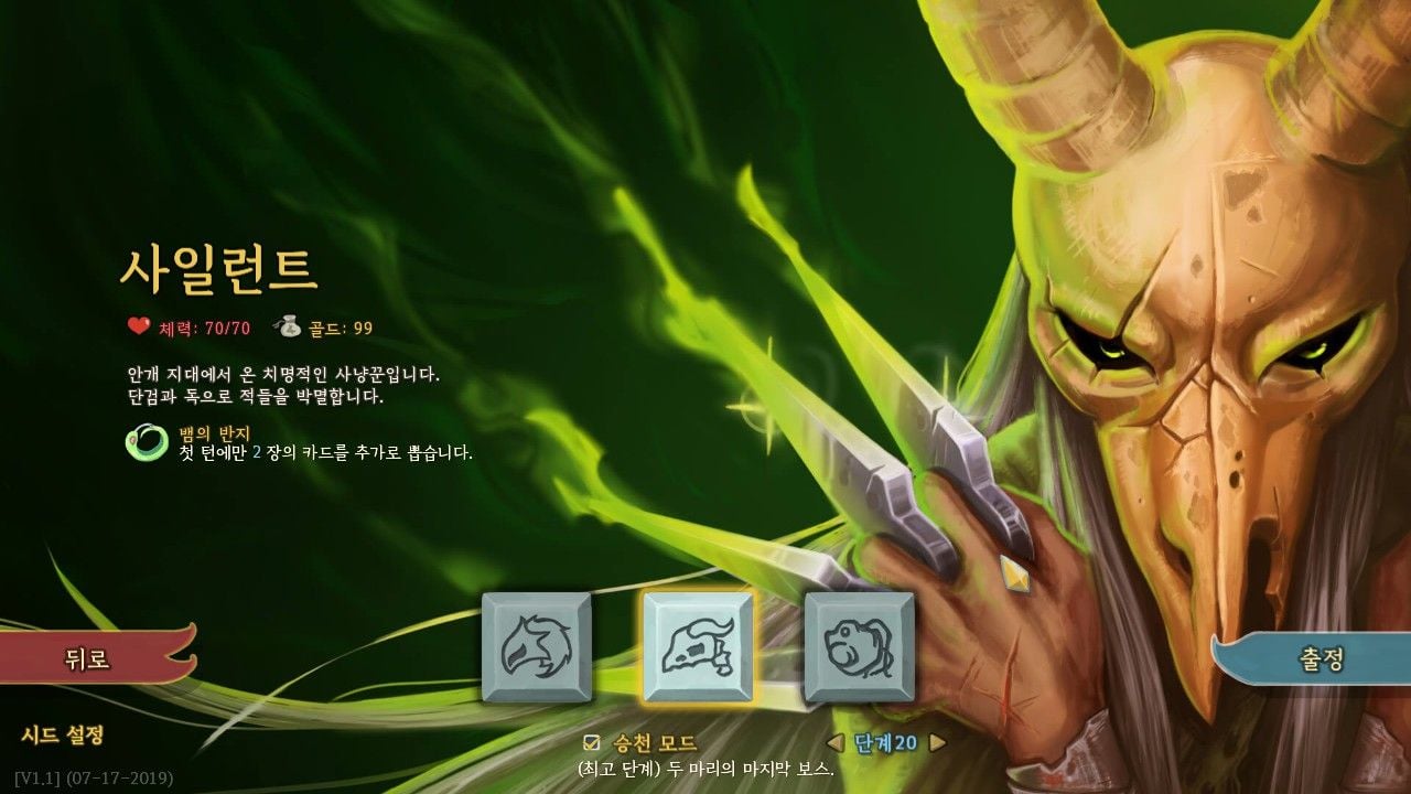 또한, 각 케릭터들마다 고유한 카드들을 가지고 있고 다른 케릭터의 카드들이 나오지는 않습니다. 물론, 카드외에 플레이하면서 획득 가능한 유물이나 무색카드들은 공통된 요소라 케릭터에 상관없이 획득할 수 있습니다.