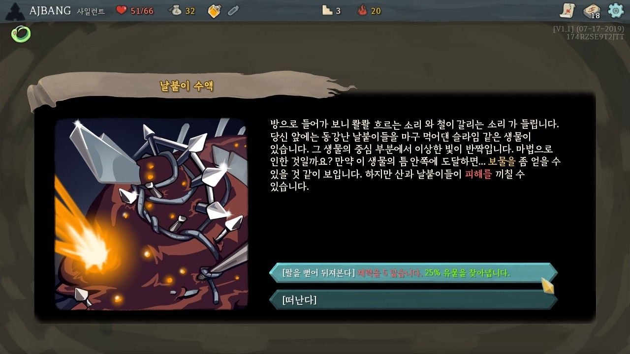 물음표 방도 마찬가지 입니다. 피 전체 회복부터 룰렛 돌리기, 동일카드 맞추기 등등 다양한 요소들이 있다는 것입니다. 총 3개의 층이 있는데 층마다 보스까지의 가는 길은 사용자의 선택입니다.이 길에 물음표 방이 몇개 또 상점이 몇개 있는지도 중요하고 중간 보스는 어디에 있는지 등, 몬스터 슬레이어스와 비교해보면 전투방이외의 부분이 매우 다양하다는 점이 큰 장점중에 하나입니다.