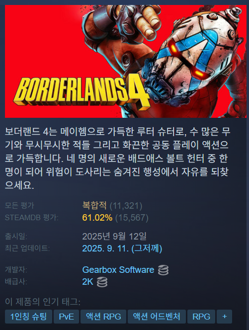 • 스팀에서는 출시 초기 "대체로 부정적"에서 시작해서 현재는 "복합적”